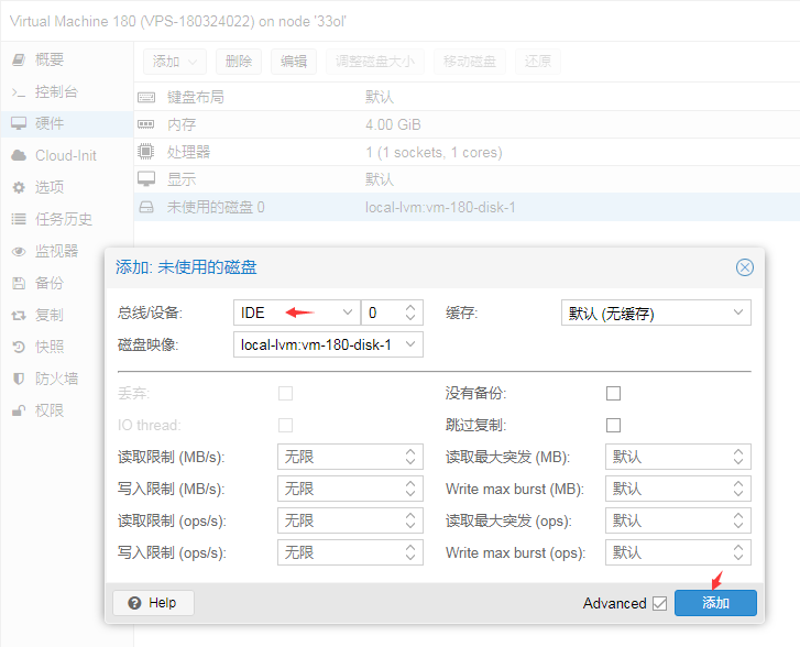 local-lvm 是目标存储位置。默认安装Proxmox的local只有100G、不建议放在local在里面。